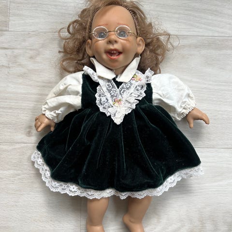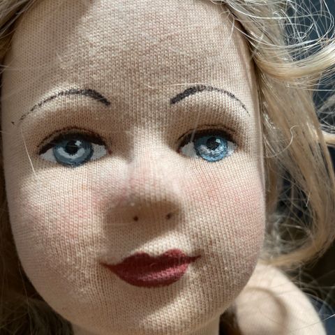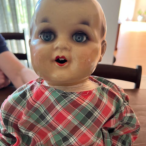 Dukke fra omkring 1950 "lyd-huller" på maven