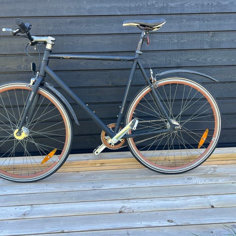 Fixie med friløbsnav. Baghjul kan vendes, hvorved man får fodbremse. Lidt rusten kæde, men kører. Afhentes i Fredensborg.