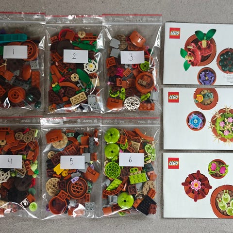 Skilt ad og sorteret tilbage i nummererede poser som i instruktionerne.