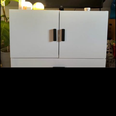 Der er kun topplader på de to høje skabe. Ønsker man på de to lave, kan disse købes hos Ikea for 100kr.