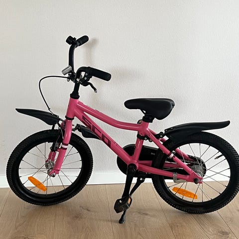 Scott contessa børnecykel med 16" hjul i turkis farve. Cyklen har kædeskærm, skærm foran og reflekser i hjulene. Sadel og stel er dekoreret med grafiske motiver. Egnet som begyndercykel til mindre børn, typisk i alderen omkring 4–6 år, afhængigt af barnets højde. Cyklen har fodbremse bagtil og håndbremse foran samt almindelige pedaler. Ingen gear.