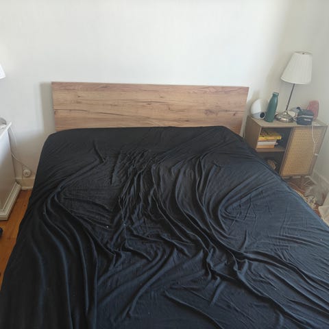 Jysk seng med madras og topmadras. Sengen står på metalben og har en mørk bund med lys madras og topmadras øverst. Velegnet som enkeltseng i soveværelse, gæsteværelse eller ungdomsværelse. Yderligere mål og specifikationer 140 x 200 . Gratis ved afhentning 😊