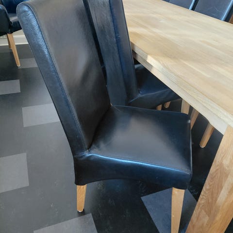 Flot egetræsbord med otte stole