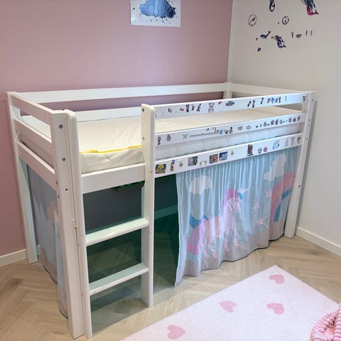 Brugt børneseng med plads til masser af opbevaring. Skuffernes bund er ekstra forstærket så de f.eks kan indeholde mange kg. Lego. Sengen har set bedre dage, men madrassen er kun 4 år gammel og super god. Madrassen koster kr. 2.500 fra ny.
