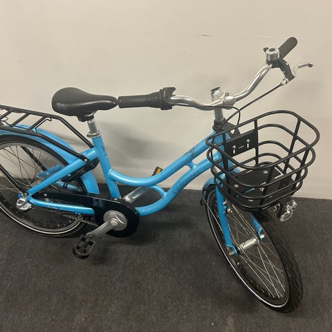 Kildemoes børnecykel med 20" hjul i sort. Cyklen har lav indstigning, kurv foran og bagagebærer bagpå. 7 Shimano gear (vedligeholdelsesfrie).