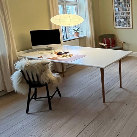 bord træ hvid med grøn bordplade