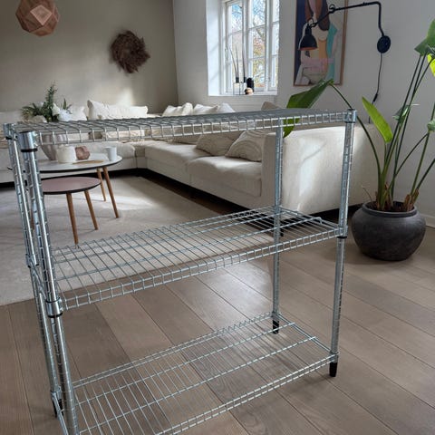 Metal reol. Høj: 254 cm. Bred: 100 cm. Dybde: 50 cm.