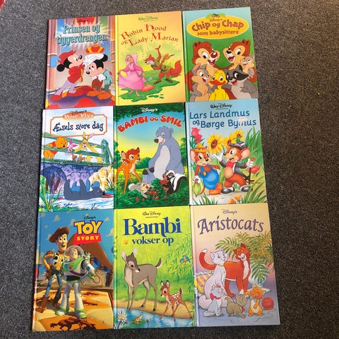Walt Disney billedbøger samling med klassiske eventyr og historier. Samlingen omfatter blandt andet titlerne "Fra eventyrverdenens skatkammer", "Løvernes Kongerige", "Peter and the Wolf", "Tornerose" og "Robin Hood". Bøgerne er illustrerede og egner sig til højtlæsning eller selvlæsning for børn. Tekst hovedsageligt på dansk, én titel på engelsk."}