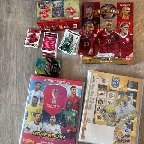En masse forskellige fodboldkort, nye og gamle.