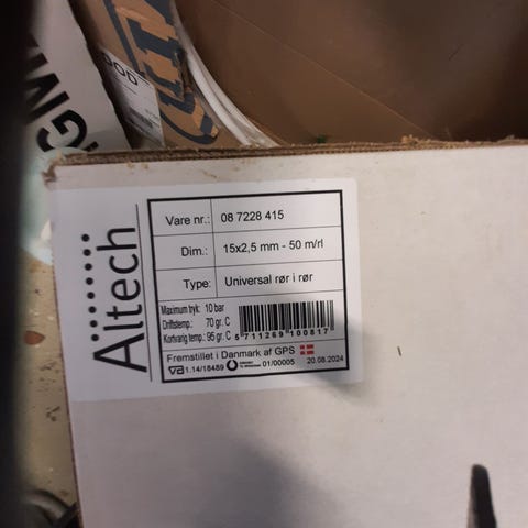 16 mm alu pex rør, med Flex rør og Isoleret rørskål grå