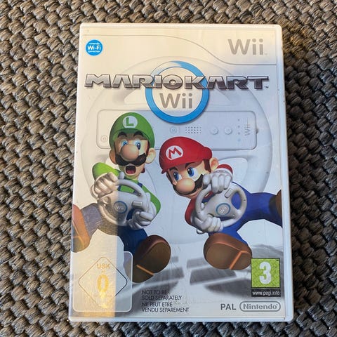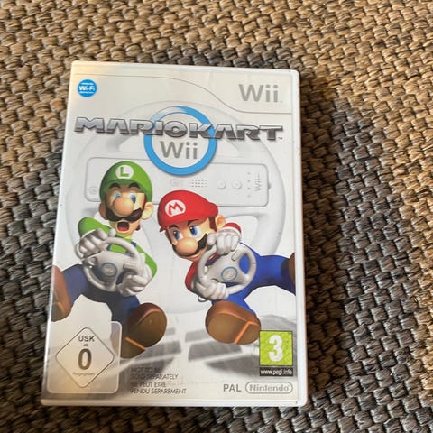 Nintendo Mario Kart Wii spil til Nintendo Wii. Racing-spil med figurer fra Mario-universet, hvor man kan køre løb på forskellige baner alene eller med flere spillere. Spillet er PAL-version og egnet til spillere fra 3 år og opefter. Leveres i originalt Wii-cover med spil-disk og omslagstekst på bagsiden.