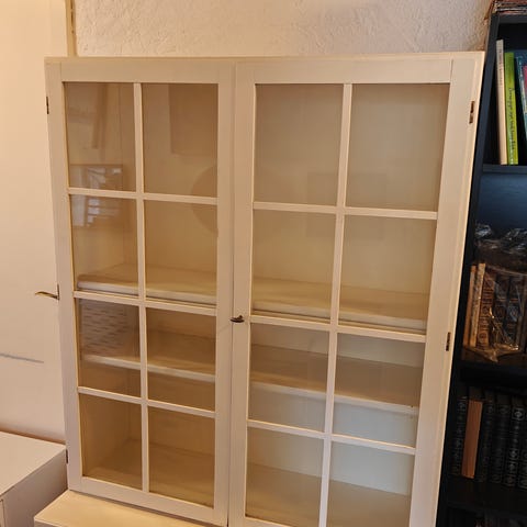 Vitrineskab væghængt hvid med glaslåger