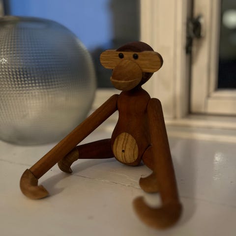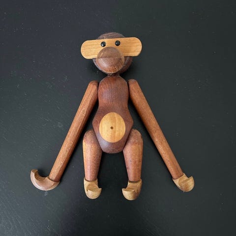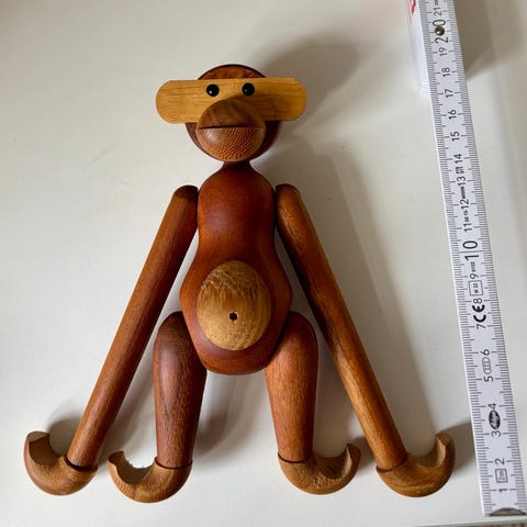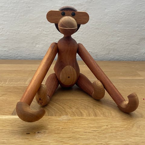 Kay Bojesen Abe træfigur fremstillet i træ med bevægelige led. Figuren er designet som en abe med enkle og karakteristiske træk. Velegnet til dekoration eller samling.