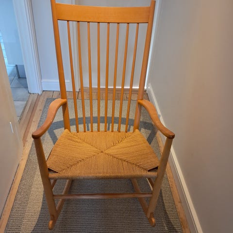 Den Minder om typen Shaker og andre nordiske tremmegyngestole med Wegners model Ch45 som den meget kendte.