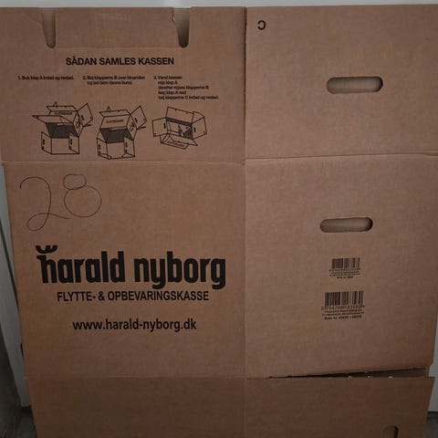 Harald Nyborg flytte- og opbevaringskasse papkasse brun