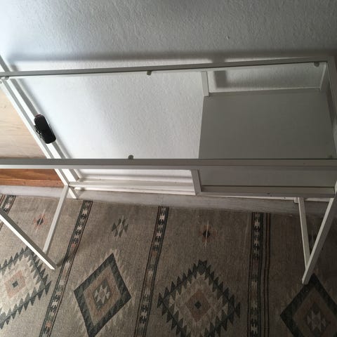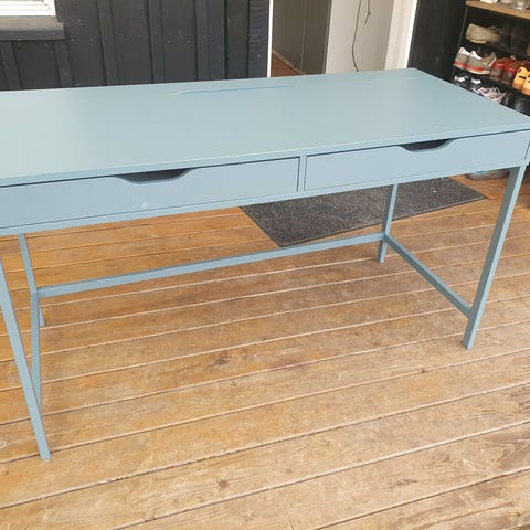 Skrivebord med brugsspor. Kan slibes og males så god som ny. Vakler ikke og fejler ellers intet.