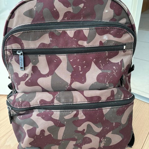 Fin skoletaske i blå med blomster. 1.-4. klasse.