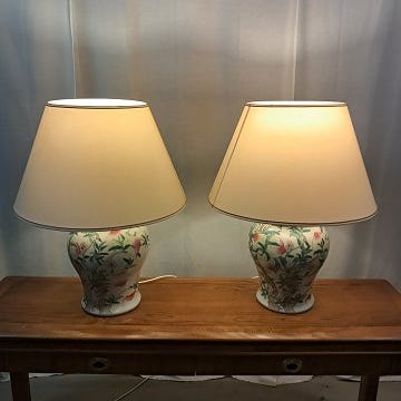 2 Lysberg Hansen og Therp bordlamper i pocelæn med skærme, fra 2000erne.