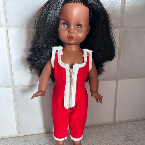 Pusle dukke i originalt tøj. I god stand bortset fra en skade på højre fod