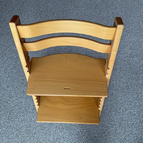 Stokke Tripp Trapp højstol i naturfarvet træ. Klassisk justerbar højstol med flytbar siddeplade og fodplade, der kan tilpasses barnets højde. Stolen er designet til at kunne bruges ved spisebordet og giver barnet en ergonomisk siddestilling. Velegnet som børnestol/højstol i køkken eller spisestue.