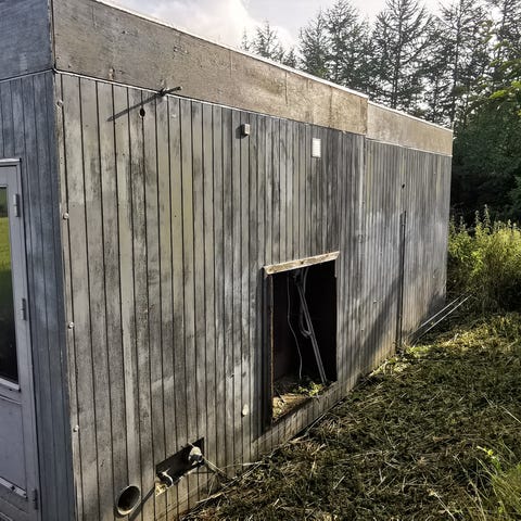Galvaniseret og isoleret hytte til svin. Hytten er udført i bølgeblik/metal med buet tag og faste endestykker. Velegnet som markhus eller læskur til svin eller andre husdyr. Konstruktionen står direkte på jorden og har åbning i gavlen. Egnede anvendelser kan være frilandsproduktion