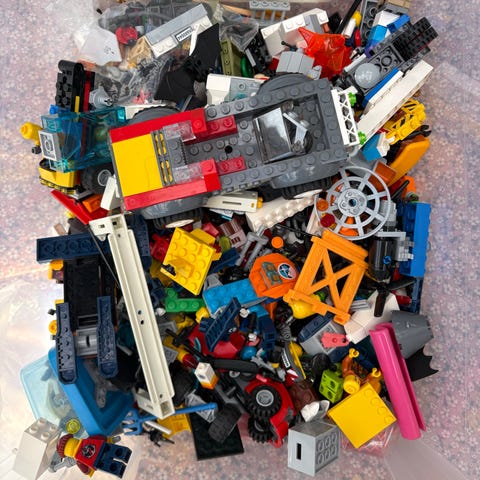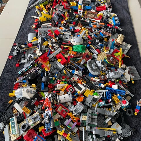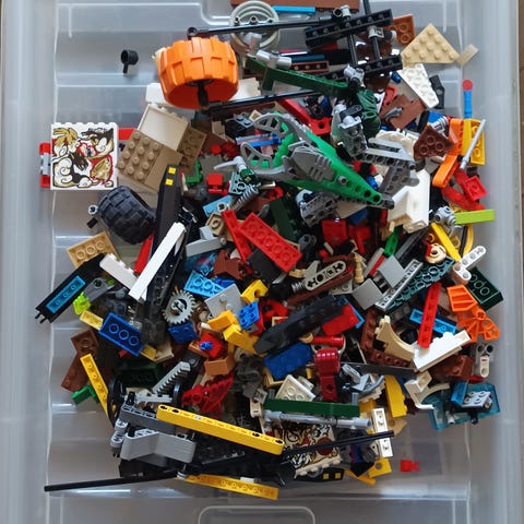 LEGO klodser blandet. 1 kg pr pose. Hver pose indeholder løse klodser i forskellige former, farver og størrelser. Indeholder blandt andet plader, specialdele og almindelige basis-klodser. Egnet til fri byggeleg, supplering af eksisterende LEGO-samlinger eller reservedele til forskellige LEGO-projekter.