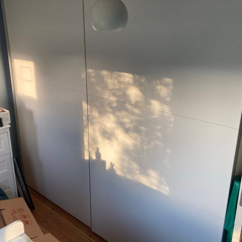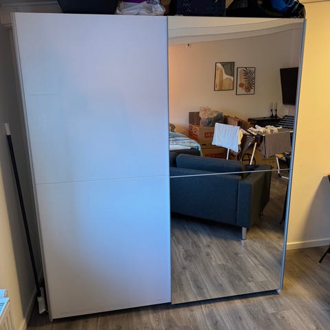 Pænt velholdt garderobeskab med spejllåger fra ikke ryger hjem.