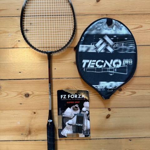 FZ Forza badmintonketcher i standardstørrelse. Ketcheren leveres med et beskyttende Sport 24 cover samt tilbehør i form af svedbånd. Farven fremstår primært i mørke nuancer. Egnet til almindeligt badmintonspil i hal.