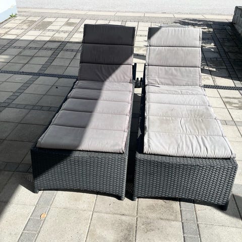 Købt på boligcenter.dk i slutningen af februar for knap 1000 kr. samlet pris uden hynder. Vi har prøvet at samle den ene, men det er vi ikke gode til, så den er delvist samlet. den anden i ubrudt emballage - du kan få dem for kr. 400,00.