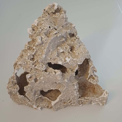 Sælger en tung, naturlig reef rock / kalkholdig revsten med flotte gennemgående huller og en porøs struktur.