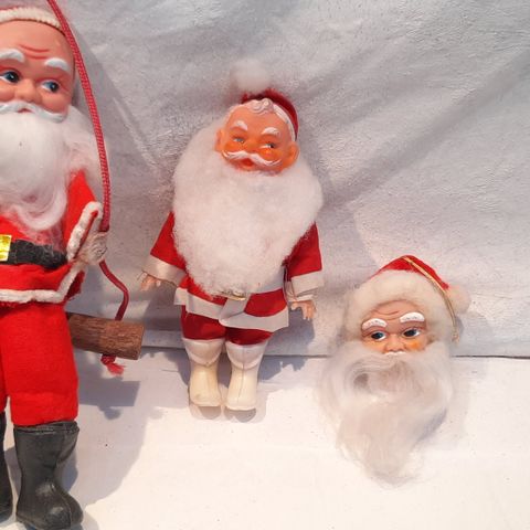 2 dansende julemænd. Jeg tror, de er fra Daells Varehus. De måler henholdsvis 9,5 og 13 cm og har begge lidt brugsspor.