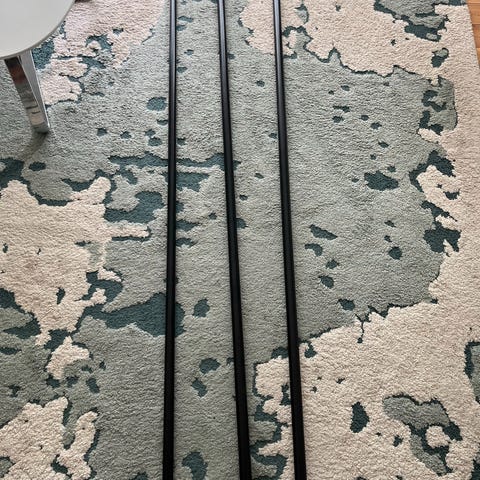 3 hvide gardinstænger, længde til hjørnerne 164 cm, længde til beslag 141, pris pr styk 150 kr., for alle 3 stænger 400 kr.