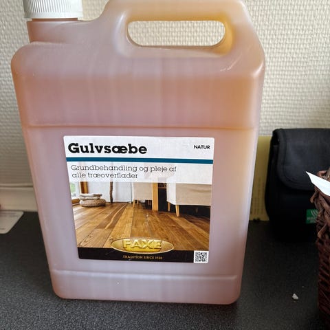 FAXE Gulvsæbe Hvid er specielt beregnet til efterbehandling og vedligeholdelse af ludbehandlet træ på gulve, møbler, bordplader m.v., hvor man ønsker den eftertragtede hvidskurede udseende.