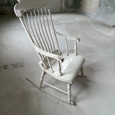Gyngestol i træ med armlæn og høj ryg sælges.