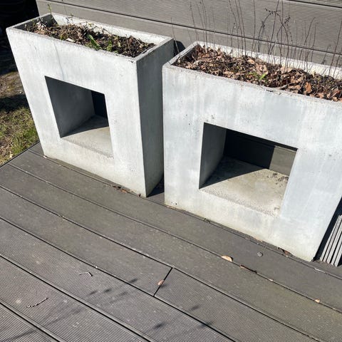 Plantekasserne er rummelige og egner sig til større planter, små træer eller buske. De har en enkel, glat overflade og lige sider, som gør dem velegnede til placering ved terrasse, indkørsel eller i haven.