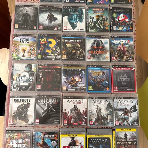 Playstation 3 spil samling. Forskellige titler i originale PS3-covers, herunder blandt andet action-, skydespil-, sport- og rollespil. Spil egner sig til brug på Playstation 3-konsol. Flere af spillene har aldersmærkning fra 16 eller 18 år, enkelte fra 3 eller 12 år. Velegnet til dig der ønsker en varieret samling af PS3-spil inden for flere genrer.