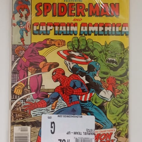 Marvel Spider-Man and the Mighty Thor tegneseriehæfte. Forsiden viser Spider-Man og Thor. Bagsiden har reklameillustration og tekst. Amerikansk tegneserie i hæfteformat, egnet til samlere af superhelte- og Marvel-tegneserier.