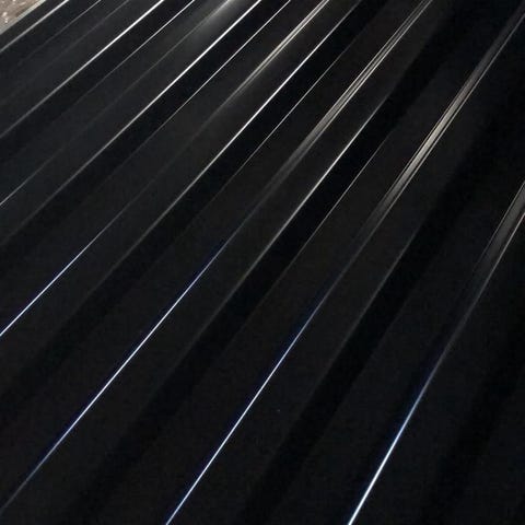 Tagplader i metal i sort farve. Pladerne har profil med bølge/teglstens-look. Med kondensdug.