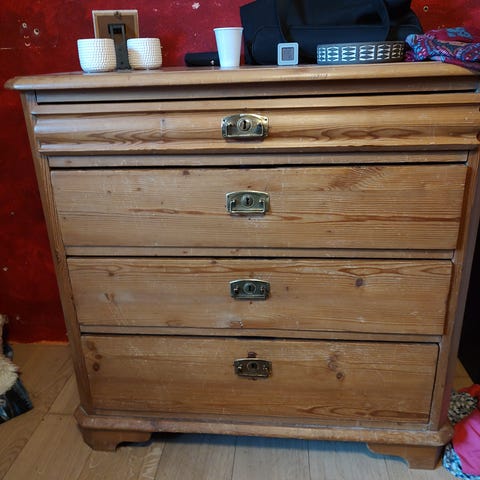 Kommode fyrretræ natur med skuffer og metalskuffertræk