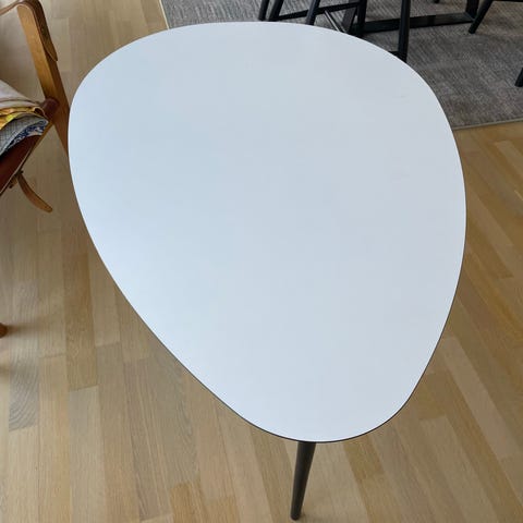 Unikt S-formet sofabord i hvid højglans med glasplade