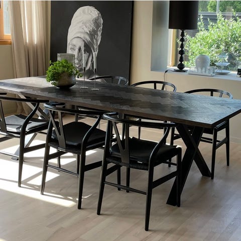 6 stk. sorte Y-stole med sort flet (Egetræ)