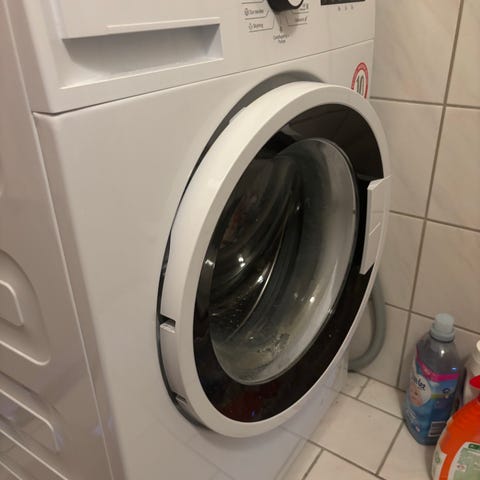 Blomberg frontbetjent vaskemaskine i hvid. Maskinen har frontbetjent låge og rustfri tromle. Der medfølger brugervejledning til modellen, som viser betjeningsmuligheder og programmer. Er cirka et par år gammel.