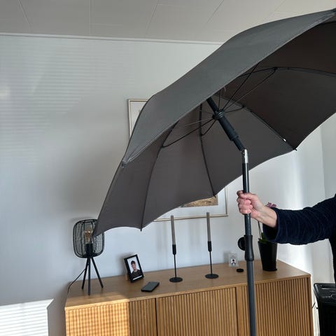 Parasol i sort stof.