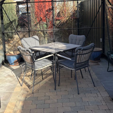 Originalt Marguerite sæt med havebord og 4 stole. Bemærk at det er den flotte stolemodel.