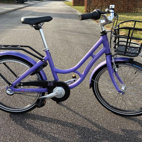 Rigtig fin pigecykel med 3 gear til pige på ca. 6 år. Gode led lygter for og bag samt lås med 2 nøgler og cykelkurv. Brugt ganske lidt og alt virker. Vi har papirerne på cyklen.
