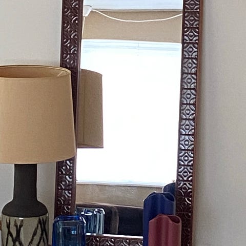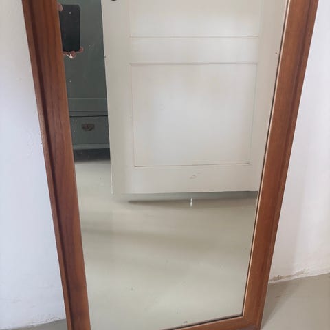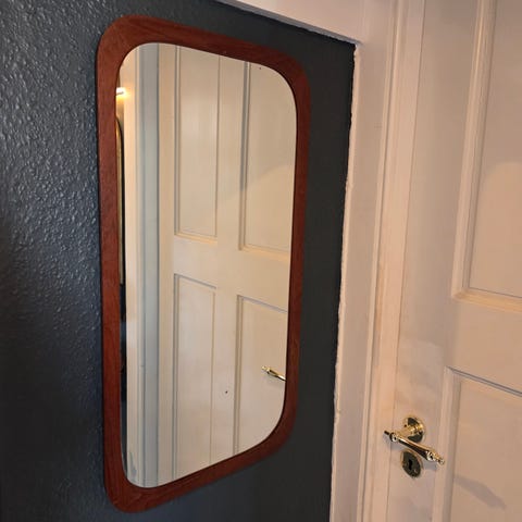 Retro spejl med teak-ramme og keramiske fliser