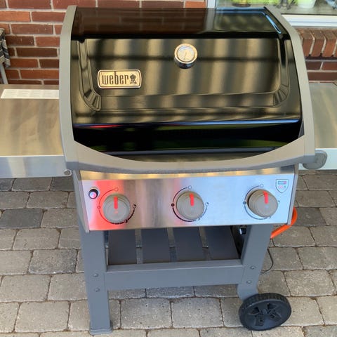 Stor Weber gasgrill med sidebrænder. Flavorizer bars, støbejernsrist og rotisserie fra sidste år. Medfølgende grillovertræk. Brændere vender øst/vest hvilket er en stor fordel ved brug af rotisseriet. Alt virker.