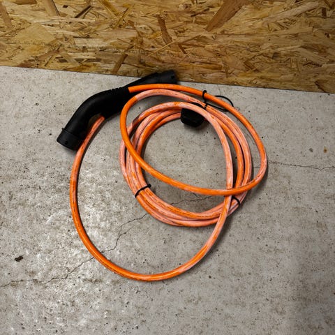 Ladekabel til elbil med type 2-stik i begge ender. Kablet er i en gul farve, som gør det synligt på jorden. Egnet til opladning af elbil eller plugin-hybrid på ladestandere med type 2-tilslutning. Kabelet har støbte stik og er udført i fleksibelt plastmateriale. Velegnet som primært eller ekstra ladekabel til bilen. “ mormorlader”