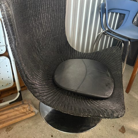 Rattanstol med råhvid stolehynde