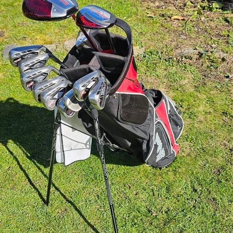 Golfsæt fra Mizuno og taylormade til højrehåndet herre. Flotte jern fra Mizuno; 5-p med en 56 og 48 graders wedges med lidt rust så er der også driver og 3 wood i fra taylormade serien r7. Sætte kommer i en golf bærrebag og er perfekt til sommer seasonen.